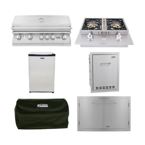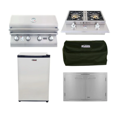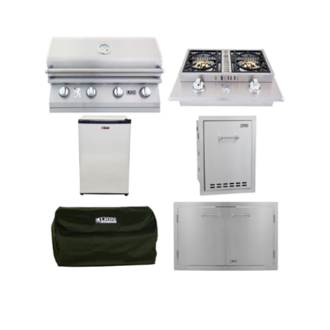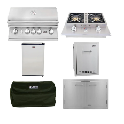 Lion proudly showcases their expertise in gourmet grilling with the L90000 natural gas grill. This 40-inch stainless steel BBQ grill is equipped with all the features and style to kickstart your backyard barbecuing adventures. Six Lion Quick Lite valves ensure a quick, consistent flame for easy grill startup, while the user-friendly push-to-turn knob design simplifies operation. The grill boasts a robust commercial-grade 304 stainless steel construction, ensuring its resilience in your outdoor space. Its double-layer, seamlessly welded stainless steel grill head with polished edges delivers durability to your grilling area. Five cast stainless steel burners generate a whopping 75,000 BTUs of cooking power on the grill’s surface, and an additional 15,000 BTU infrared rotisserie back burner adds to the fire’s fuel! Monitoring your meal is effortless with the XL commercial temperature gauge, and the two interior lights provide ample illumination so you can savor your Lion grill late into the evening. Premium solid stainless steel cooking grates are resistant to wear and tear and offer an ample 802 square inches of grilling space. Experience the perks of a gourmet grilling package with the included rotisserie, cover, smoker box, griddle, and griddle remover.