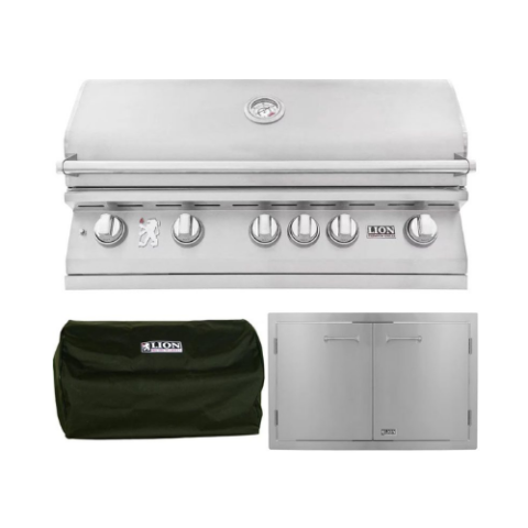 Lion proudly showcases their expertise in gourmet grilling with the L90000 natural gas grill. This 40-inch stainless steel BBQ grill is equipped with all the features and style to kickstart your backyard barbecuing adventures. Six Lion Quick Lite valves ensure a quick, consistent flame for easy grill startup, while the user-friendly push-to-turn knob design simplifies operation. The grill boasts a robust commercial-grade 304 stainless steel construction, ensuring its resilience in your outdoor space. Its double-layer, seamlessly welded stainless steel grill head with polished edges delivers durability to your grilling area. Five cast stainless steel burners generate a whopping 75,000 BTUs of cooking power on the grill’s surface, and an additional 15,000 BTU infrared rotisserie back burner adds to the fire’s fuel! Monitoring your meal is effortless with the XL commercial temperature gauge, and the two interior lights provide ample illumination so you can savor your Lion grill late into the evening. Premium solid stainless steel cooking grates are resistant to wear and tear and offer an ample 802 square inches of grilling space. Experience the perks of a gourmet grilling package with the included rotisserie, cover, smoker box, griddle, and griddle remover.
